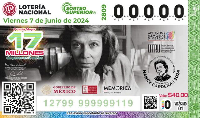 La Lotería Nacional de México presentó un billete especial para conmemorar el 90 aniversario del natalicio de Nancy Cárdenas, una figura icónica en la lucha por los derechos de la comunidad LGBTI+ en México.
