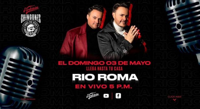 Río Roma, el dúo mexicano de pop conocido por sus baladas románticas, ofrecerá un concierto por live streaming a través de #ChingonesUnidosXMéxico, la plataforma musical de Cerveza Victoria, el cual buscará apoyar e impulsar al comercio local.