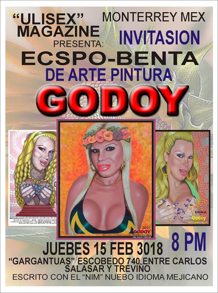 La Ecspozicion de las Vellezas de Godoy estará abierta al público este 15 de febrero desde las 20:00 horas en Gargantúas Espacio Cultural, Escobedo 740 entre Carlos Salazar y Treviño, en Monterrey.
